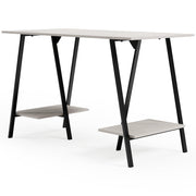 Love an urban farmhouse aesthetic? Make it work to your advantage with this beautifully styled home office desk. A simply striking choice in home office furniture, it has an unmistakable farmhouse feel thanks to a whitewashed finish and gunmetal accents. This minimalist-chic desk with open storage shelves and sawhorse legs gives you plenty of options when working on homework, doing art projects, or just relaxing.