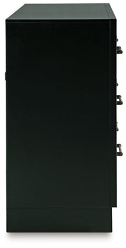 Experience the captivating allure of this dresser, an effortless blend of casual and refined aesthetics. Its two-tone finish combines satin black with a rich brown wood tone for a modern, relaxed vibe that you'll love waking up to. Perfectly suited for your contemporary home, this dresser has plenty of drawer space to tuck away your wardrobe and spare bed linens.