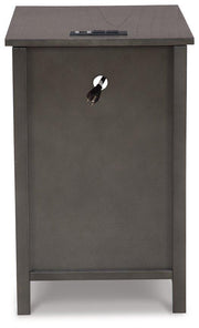 Add big character to a small space with this chairside end table. With its compact size and strong silhouette, it can go anywhere and blend easily into the decor. Less is so much more with the Shaker-inspired design and gray wood tone finish. Loaded with form and function, this end table displays accent pieces and stores essentials securely while keeping devices powered up.