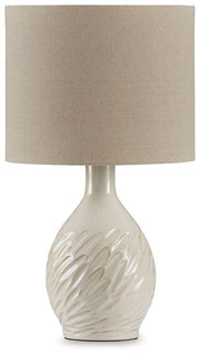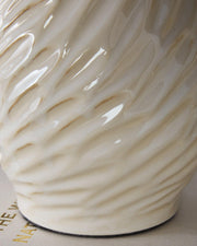 Exuding a relaxed vibe, this ceramic table lamp is a bright idea. The textured base and distressed cream glaze add character and casual elegance to your home. Whether you're working or unwinding, this lamp's tranquil lighting will create the perfect atmosphere.