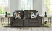 Indulgent comfort meets fashion-forward flair in this reclining loveseat with console. Its luxuriously soft upholstery and captivating color show off your cozy yet smart style. Sleek track arms infuse a modern sensibility, while the striking accent pillows make this piece even more inviting. Simple pull tab reclining puts endless relaxation within easy reach, whether you're lounging solo or with friends. Cup holders and hidden storage complete the experience.