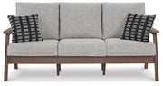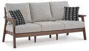 Get back to nature with the relaxed styling of this outdoor sofa with cushions. Crafted of MEGA-TUFF® HDPE material, it combines the exceptional durability and weather resistance you need with the ‚Äúwood look‚Äù you love. Rest assured, the cushions are wrapped in comfortable and carefree Nuvella® fabric, leaving you plenty of time to sit back and smell the roses.