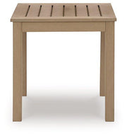 This end table is a beautiful addition to any outdoor living space. Effortless in its simplicity, this piece echoes your easygoing sensibilities. Combining durable, cutting-edge engineered materials, its Weatherwood construction in a blond wood color enhances the contemporary design. Pair this table with the matching sofa and chairs for a spectacular backyard or patio seating arrangement.