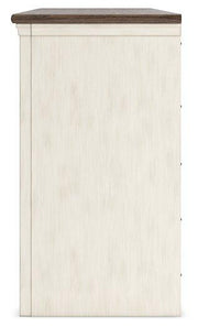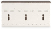 - Textured antiqued white finish with contrasting weathered gray top